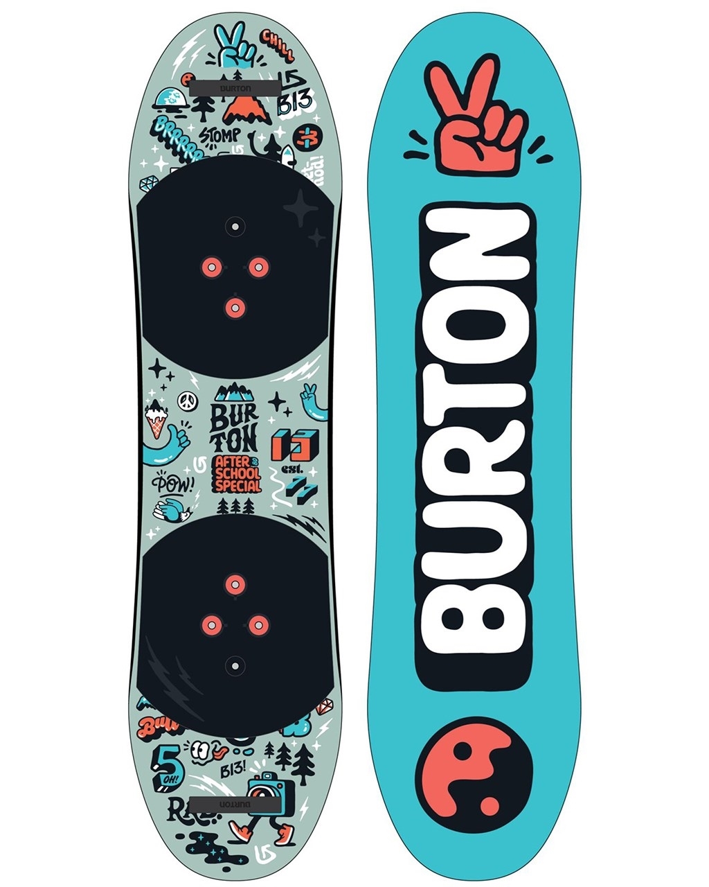 Pakken kommer ferdigmontert med duckstance for at det skal være enkelt å kjøre i begge retninger. Det kan også justeres til en annen vinkel. Brettet har en rocker både på lengde og bredde for å unngå kanthugg. Er kompatibel med Riglet Reel. Bindingen har bare en rem med én stor pumpespenne som er tilpasset for å kunne brukes uten å ta av hanskene, noe som gjør det enkelt for barn å ta av og på bindingen selv. Bindingen kan brukes både med snowboardstøvler og vanlige vinterstøvler.