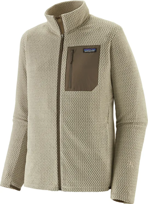 Men's R1 Air Jacket fra Patagonia er en teknisk fleecejakke for menn. Trøyen er laget av et hullfibermateriale som kapsler inn kroppsvarmen, transporterer bort fuktighet fra huden og tørker raskt for å holde deg både tørr og varm. Sikksakkmønsteret øker ventilasjonsevnen og minimerer trøyens volum, noe som resulterer i en lett og luftig følelse samt en tettsittende passform som følger bevegelsene dine under klatring eller tur.