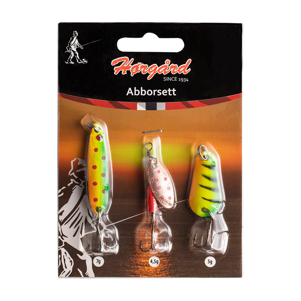 Sett med en spinner og to sluker som passer perfekt til abborfiske!