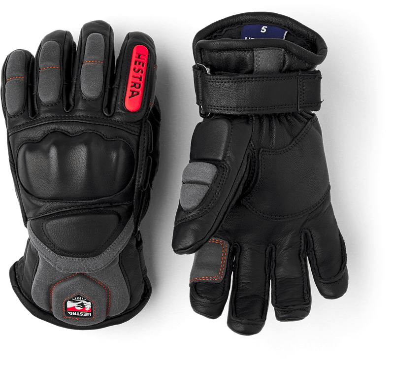 Yttermaterialet er laget av HestrAs mest slitesterke geiteskinn, med forsterket håndflate og utvendige sømmer for optimalt grep om staven. Detaljer i Duratan – et sterkt og praktisk semsket-lignende materiale laget av polyester og polyuretan – gir ekstra holdbarhet.