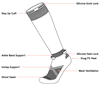 The Definitive Fit System™ and our proprietary foot moulding Memory Stretch™ delivers a precise form fit, with a semi-compression feel, zero cushion profile, ventilation panels for airflow on the bootpack and an anti-wrinkling, elasticated instep that doesn’t bunch underfoot. Innovative silicone strips on the heel and upper calf keep the sock locked in place, aided by a technically knit achilles support band that drastically minimizes heel lift while you hike, eliminating blisters and hot spots.