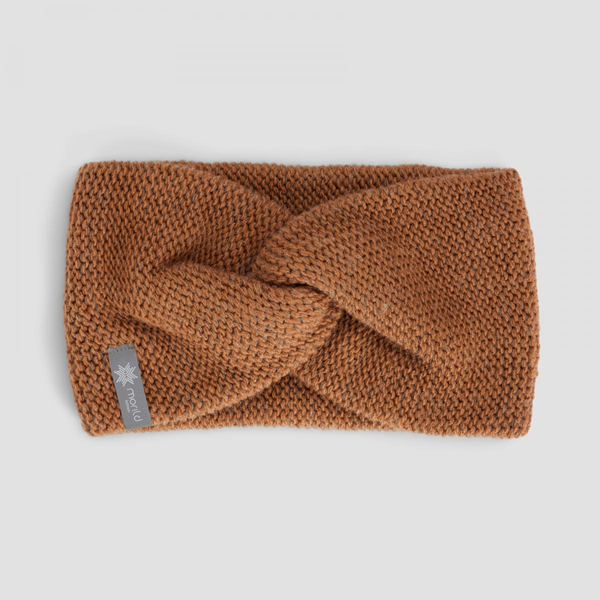 Kult dobbeltstrikket pannebånd med knute og heldekkende refleks-strikk. God og behagelig passform i deilig ullmix.