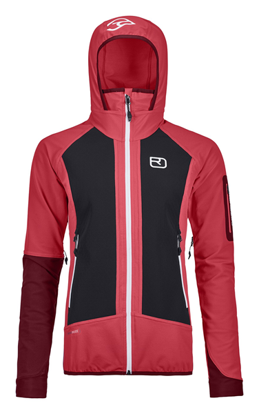 This ski touring jacket for women has an athletic cut and provides unbelievable freedom of movement thanks to the use of extremely elastic materials. A tight-fitting hood protects the head from the cold – it also fits easily under a helmet for alpine activities. Ventilation zippers under the arms provide cooling during the climb, as does the jacket’s front zipper, ensuring best possible fit, even when wearing a climbing harness. And elastic cuffs keep out cold drafts and snow. The two powermesh pockets are backpack compatible and therefore allow you quick access to your equipment. Other small items can be stowed in the bonded upper arm pocket.