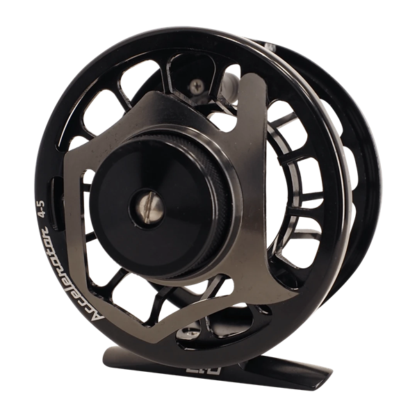 Fluesnelle frest ut av ett stykke aluminium. Den har en kraftig justerbar brems. Sveiveretningen kan endres fra høyre til venstre. Kapasitet: 50 m, 20 lbs + Wf5.