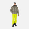 The men's Rossignol Legacy Merino Down Ski Jacket blends tricolor details with shield-shaped quilting to honor our rich alpine heritage, while performance fabrics and all-natural warmth keep you warm and dry on the mountain. Soft and supple, the jacket's waterproof, breathable membrane sheds wet weather for all-conditions skiing, while the combination of natural down and a merino lining make it extra warm. A built-in snow skirt and removable hood add extra protection for stormy days. Skier-designed features like waterproof zippers and knit thumbhole cuffs keep you warmer and let you ski longer. A dedicated pass pocket and built-in goggle cleaner make for uninterrupted ski days.