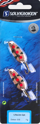 Sølvkroken Aura Lillauren er kanskje en av de mest solgte slukene i Europa og har vært flittig brukt til ørret- og annet ferskvannsfiske i lang tid. Dette er en av de mestfiskende sluker på markedet. Den har rask gange og mønster som lokker frem storfisken. Lillauren fra Sølvkroken er uimotståelig for ørret og annen edelfisk. Sluken er tilpasset for all slags vær og forhold og kan sveives inn raskt eller sakte. Hvis fisken ikke vil bite, bytt farge til det smeller. Husk at ørreten ofte angriper det som bryter et normalt bevegelsesmønster. Du kan godt legge inn små pauser eller rykk når du sveiver inn.