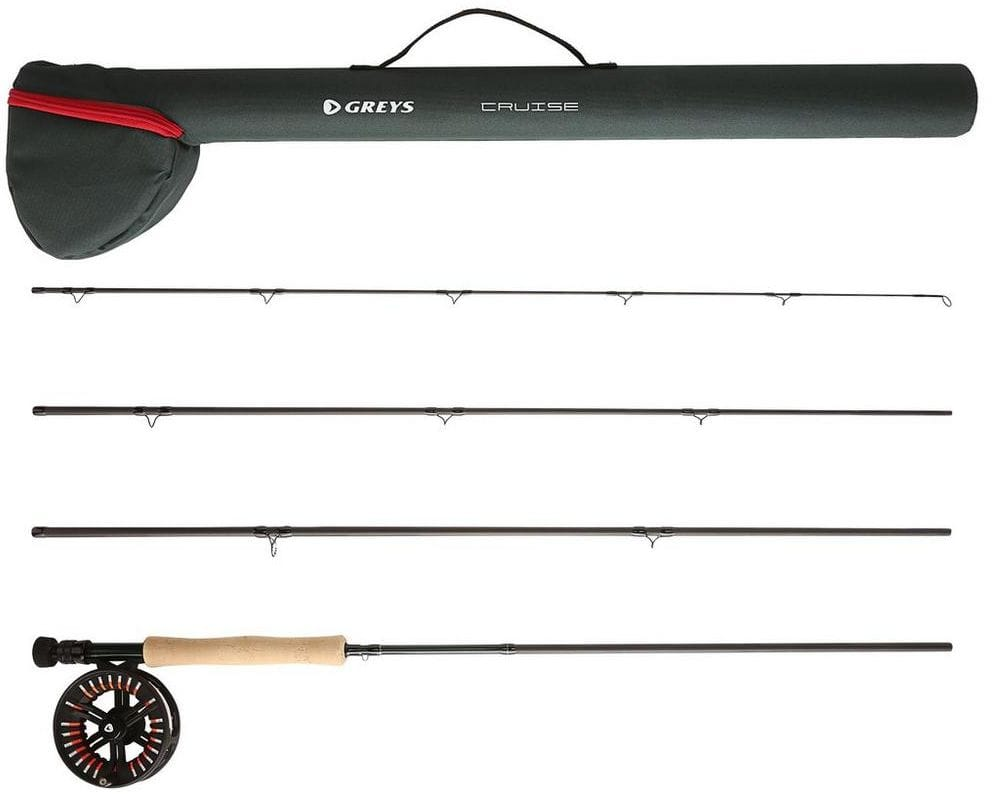 Grays Cruise Fly Combo er en 4-delt fluestang med en middels rask aksjon matchet med en Grays Cruise large arbor fluesnelle med skivebrems og tilpasset flyteline.