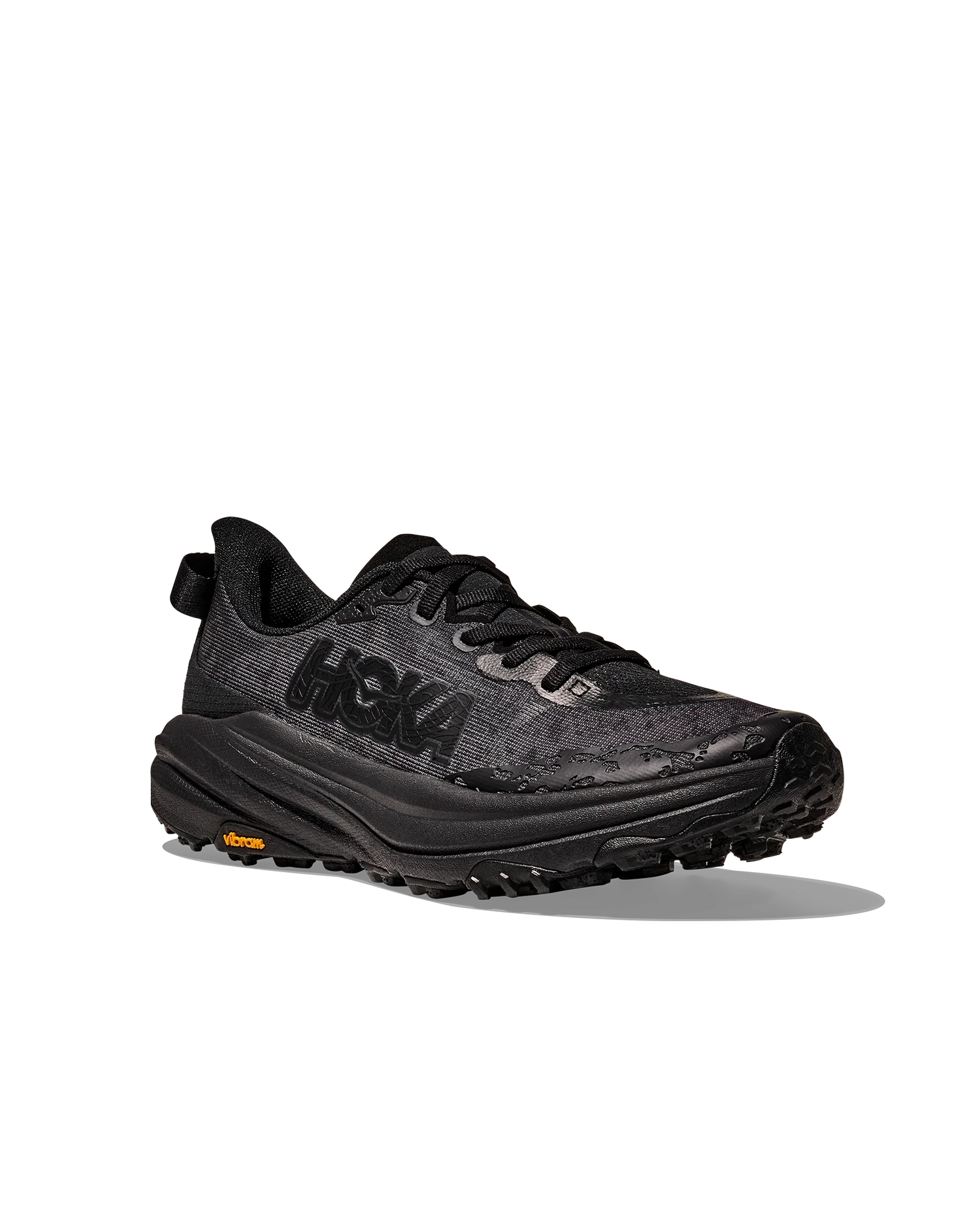 Hoka Speedgoat 6 har en oppdatert overdel i et tynnere vevd materiale. Ekstra støttebånd i mellomfoten gir et stødig hold for foten, også på mer ujevne stier. Den tynne pløsen i sokk-konstruksjonen bidrar til en komfortabel passform. Samme hælgrep som i tidligere versjoner, men med hempe bak som gjør det lettere å få den på. CMEVA-mellomsåle, med en blanding som gjør den litt mer responsiv enn før. Yttersåle av Vibram Megagrip gir et trygt grep, også på våte steiner og røtter. 5mm knotter er strategisk plassert for godt grep på myk skogbunn. GTX-versjonen har en Gore Tex-membran som gjør skoen vanntett.