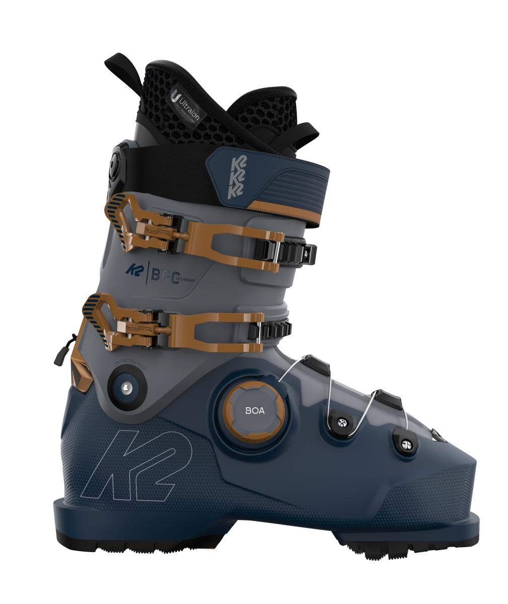K2 introduserer en ny serie high volume støvler for men (103mm lest) med det nye BOA® Fit-systemet som optimaliserer hvordan støvelen sitter rundt foten. BFC 120 BOA® er en High Volume støvel med performance retta fleks på 120. En optimal støvel for den som trenger litt ekstra bredde over lesten, men ikke ønsker å gå på kompromiss med fleksen, men vil ha kraft i hver sving. BOA® Fit Systemet (H+i1) bytter ut de to nederste spennene og gir en annen opplevelse av passform og stramming. Et nyutviklet kraftigere system som gir jevnere stramming over hele foten, mindre presspunkter der det strammers og en mulighet for å dekke breiere spekter av lestbredder. I tillegg resulterer en stramming med BOA® en bedre sirkulasjon rundt foten. Skallets øverste del kan også justeres for å tilpasse individuelt forskjellige leggstørrelser. BFC 120 BOA® levere også en enkel gåfunksjin som er prefekt å løse ut etter en full dag på ski, eller npr en spenner opp støvlene i lunsjen.