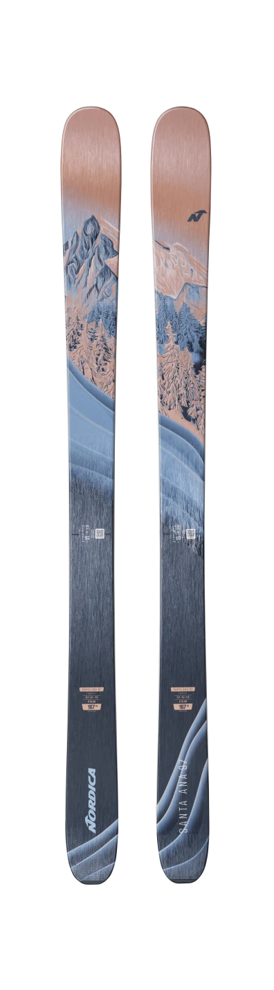 The mountains have so much to offer–enjoy it all with Nordica’s Santa Ana 97. Incredibly playful and versatile, this all-mountain ski is at home in any terrain and all conditions. For an especially smooth, the Santa Ana 97 features a fresh construction that pairs both a wood core and an elastomer Pulse core with a sheet of terrain-specific metal. Combined with a wider waist, this construction amplifies control and response while also excelling in softer snow. The ski inherits the legendary performance of the Santa Ana collection–and then builds upon it to boost your confidence and fun. Ski what you love and love what you ski with Nordica’s Santa Ana 97.