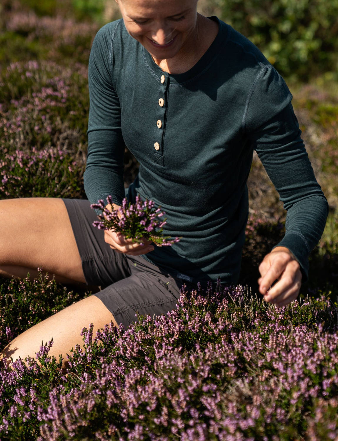 Klassisk bestefartrøye i økologisk ull og silke. Knapper i oliventre. Se bra ut til fjells og til kvelds.