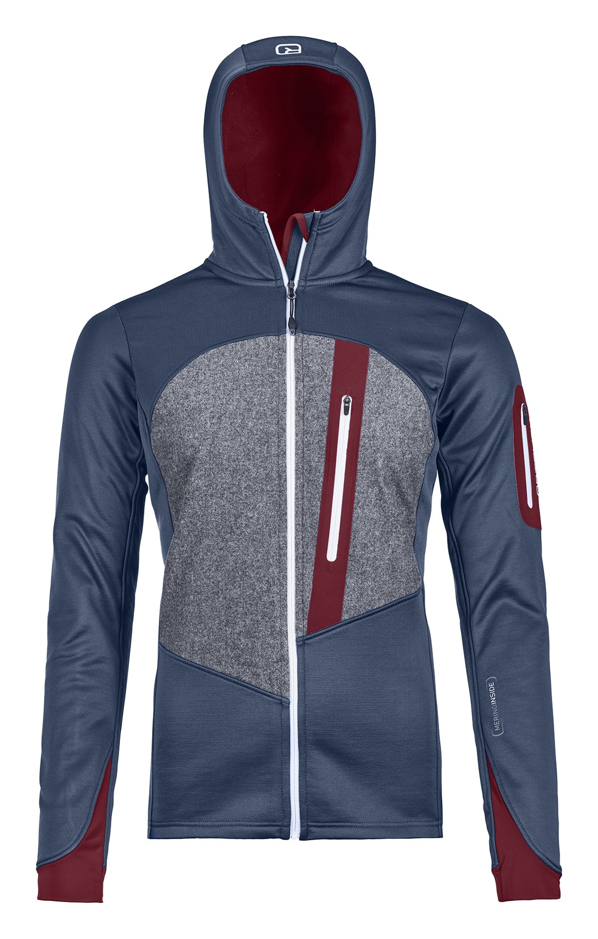 An ergonomic cut and high stretchability mean the FLEECE LODEN HOODY for women fits perfectly even during extreme activity. The practical breast pocket and bonded upper arm pocket have room for small items such as a map, cell phone or trail bar and can be easily accessed, even when wearing a backpack.