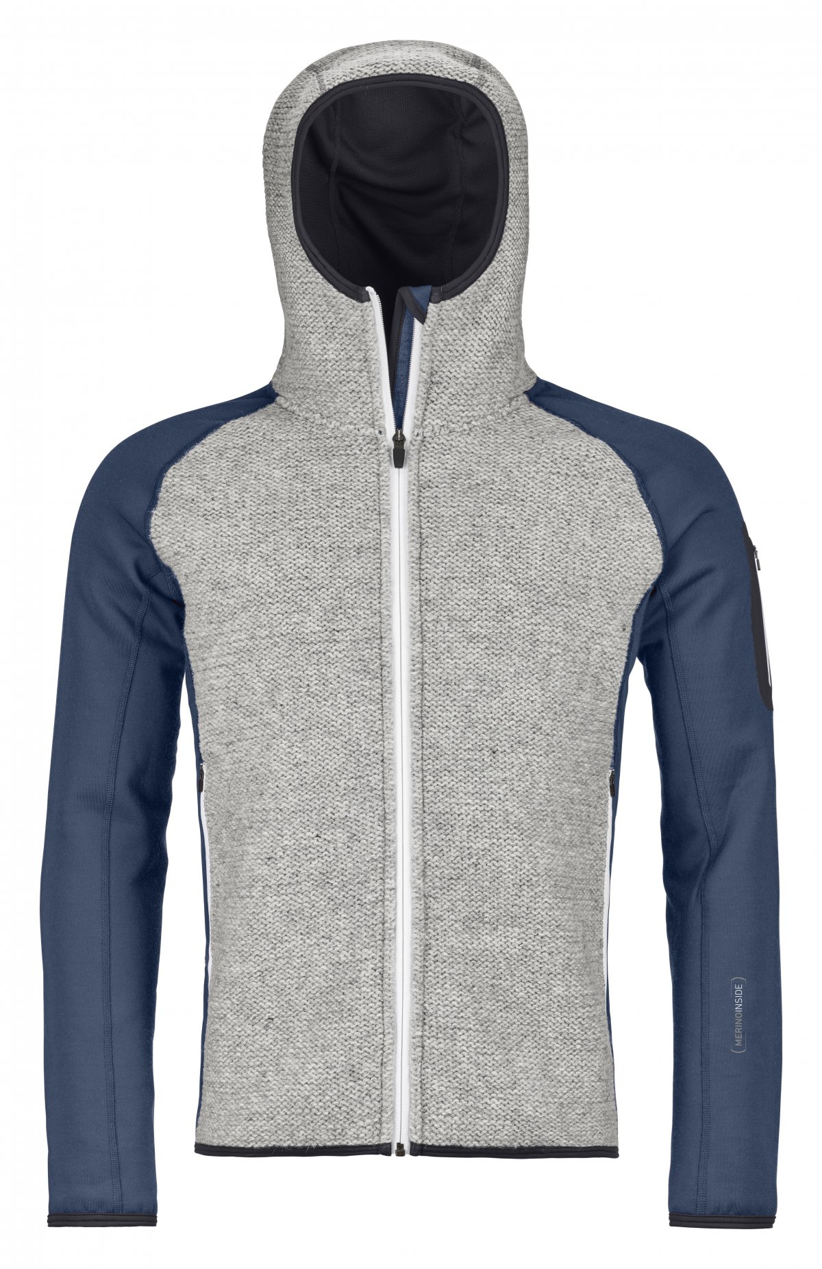 Out of tradition and conviction: For our new CLASSIC KNIT HOODY in the MERINO FLEECE PLUS SERIES we use traditional knit inserts for the exterior and our tried-and-tested MERINO FLEECE PLUS with polyester, and pure merino wool for the interior. Our Styria-based wool supplier has been an ORTOVOX partner from the very start and has been supplying us since 1990. He produces wool in an ENVIRONMENTALLY-FRIENDLY and SUSTAINABLE WAY. The knitted front and hood mean the jacket is WARM and DURABLE. The merino mesh on the inside of the hood also ensures more comfort and is pleasant on the skin. The two front pockets on the fleece jacket give you plenty of space to warm your fingers or for various tour accessories. You can easily store other small items in the bonded upper arm pockets. The ergonomic cut and use of elasticated materials ensure a good fit and sufficient freedom of movement.