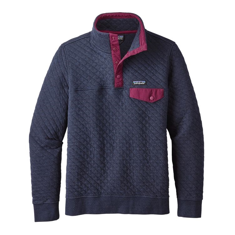 Warm-up post-workout with the Cotton Quilt Snap-T® Pullover and a gourd of steaming maté. The pullover jacket was made for in-between moments. Constructed from soft 79% organic cotton/21% polyester jacquard knit fabric with lofty fill yarns of textured polyester for breathable, cozy warmth, it’s the layer you’ll reach for when chalking up for an early-morning crag session or checking the surf. The 1" diamond quilting creates an effective heat-trapping surface and reduces bulk while increasing compressibility, encouraging you to take it anywhere. Details include a left-chest pocket with a nylon Snap-T-style flap, snap closure and P-6 label; a doubled, stand-up collar with a 4-button snap placket, wide 2¾" rib-knit cuffs, climbing cord hanging loop and inside contrast collar tape brushed for softness. Hip length.