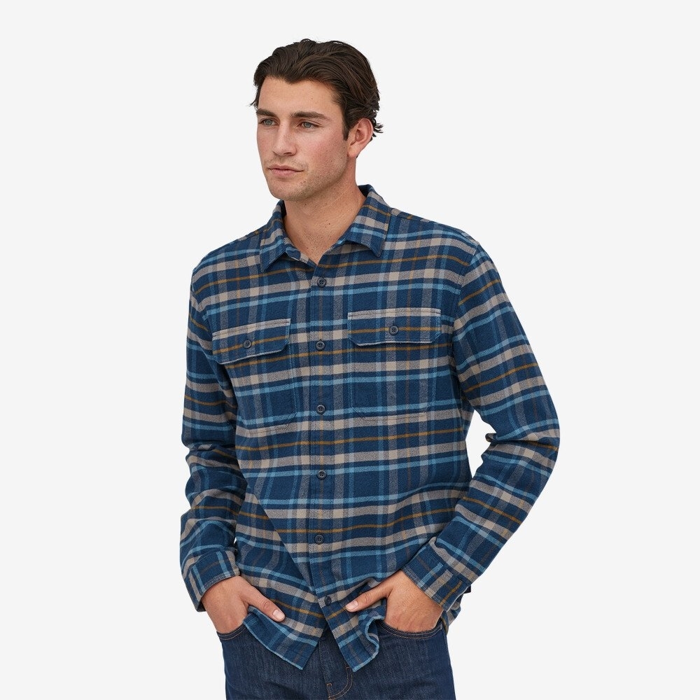 PATAGONIA Mens Long Sleeved Fjord Flannel Shirt Independence: New Navy
