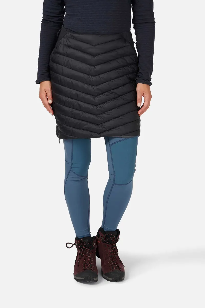 Rab Cirrus Skirt er et allsidig, pakkbart og vendbart isolert skjørt til dame. Ideell for skiturer eller fotturer under kalde forhold, for et løft av varme når du trenger det. Skjørtet har glidleås i siden og stretch i midjen for god passform og komfort.