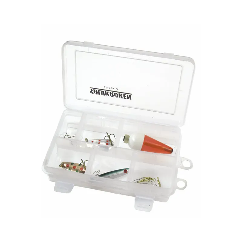 Startpakken inneholder en praktisk slukboks med dupp, kroker, svivler og tre av Sølvkrokens mest solgte sluker: